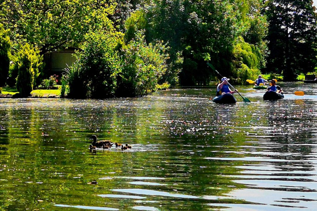 Eine faszinierende Wasserlandschaft, in der sich manch einer ein kleines Freizeit-Paradies geschaffen hat und das anderswo einer Wildnis gleicht. Fifty shades of green.