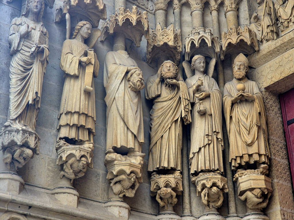 Bilderstürmer und Revolutionäre haben den Figurenschmuck in Amiens in Ruhe gelassen, die beiden kopflosen Herren hier sind 1. der Hl. Dionysos/Denis und Nr. 2 eventuell Albanus von Mainz. Zumindest habe ich keine anderen Heiligen gefunden, die mit dem Kopf in den Händen dargestellt werden.