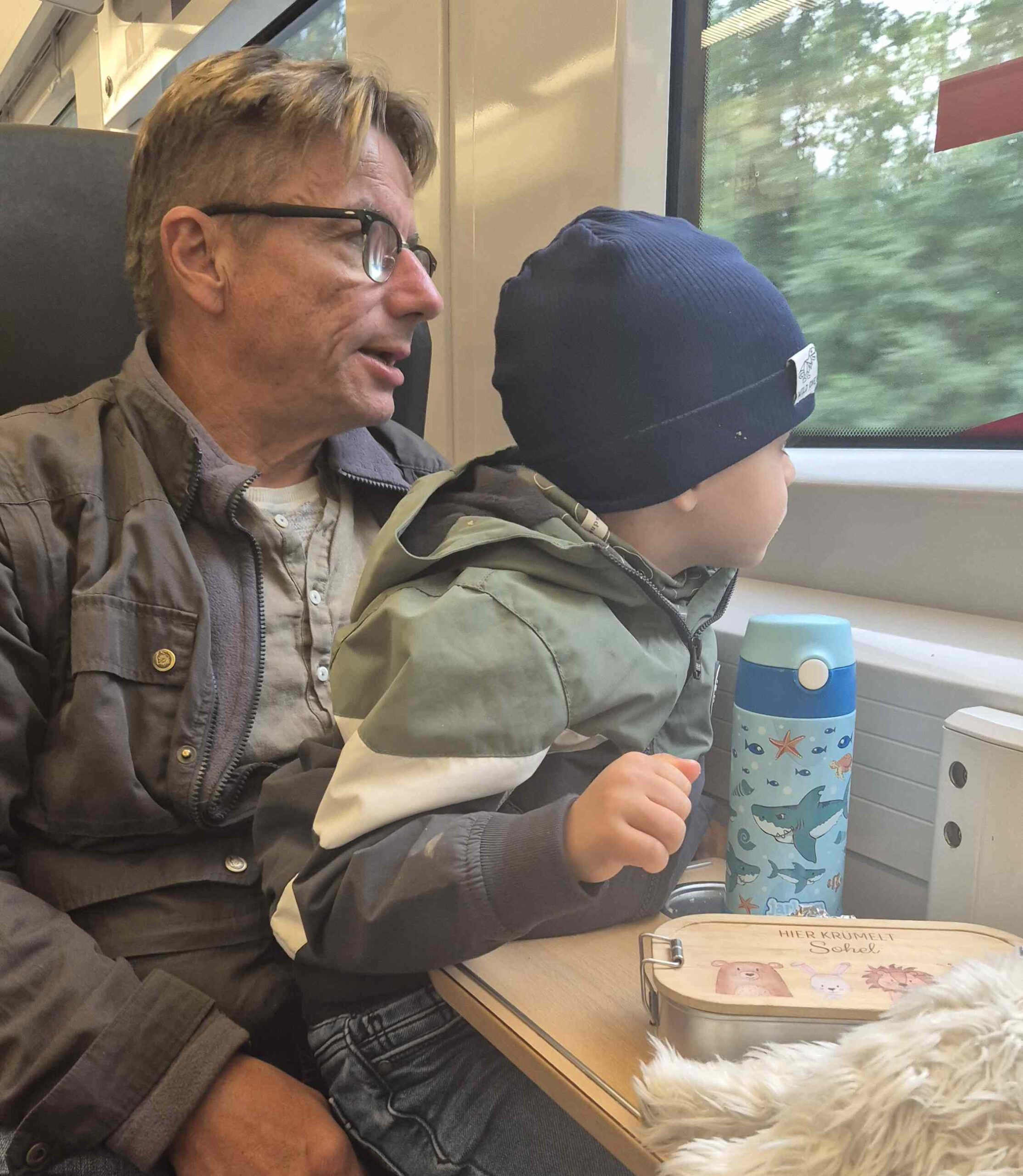 Soso hat immer total viel Spaß mit dem Öffi: Jedes kleine Detail fällt ihm auf und er fragt uns Löcher in den Bauch. Diesmal haben es ihm vor allem die Oberleitungen angetan und wir geben unser Bestes: Immerhin doziert er vor seiner Mama hinterher, dass da Strom drin ist und man die nicht anfassen darf, sonst ist man tot oder schlimm krank 😅.