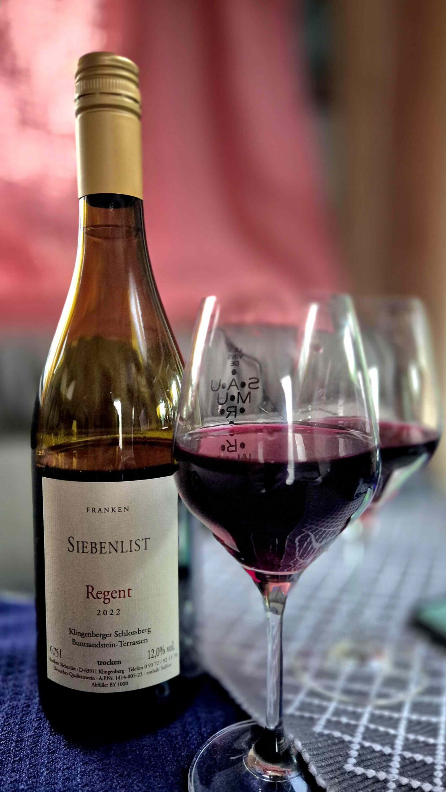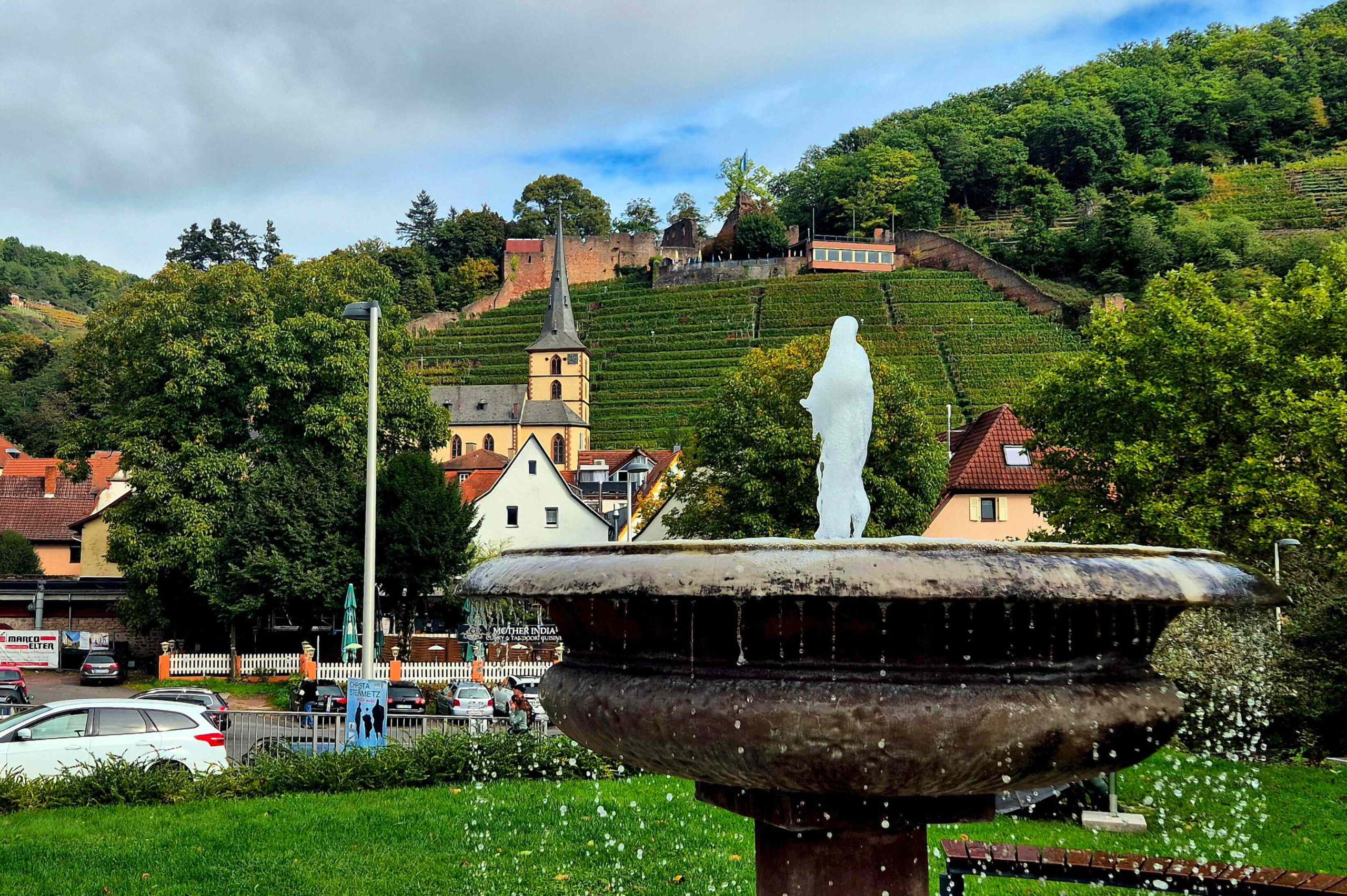 Da wir weder eine Häckewirtschaft (ok – die Winzer sind noch bei der Arbeit im Keller), noch eine Weinstube oder andere Einkehr finden, entlocken wir dem camp-o-mat ein Fläschchen Klingenberger Schlossberg. Sehr lecker und eine wunderbare Farbe, die ich als dunkles Rosa-violett identifiziere. Sieht man sogar auf dem Foto.
