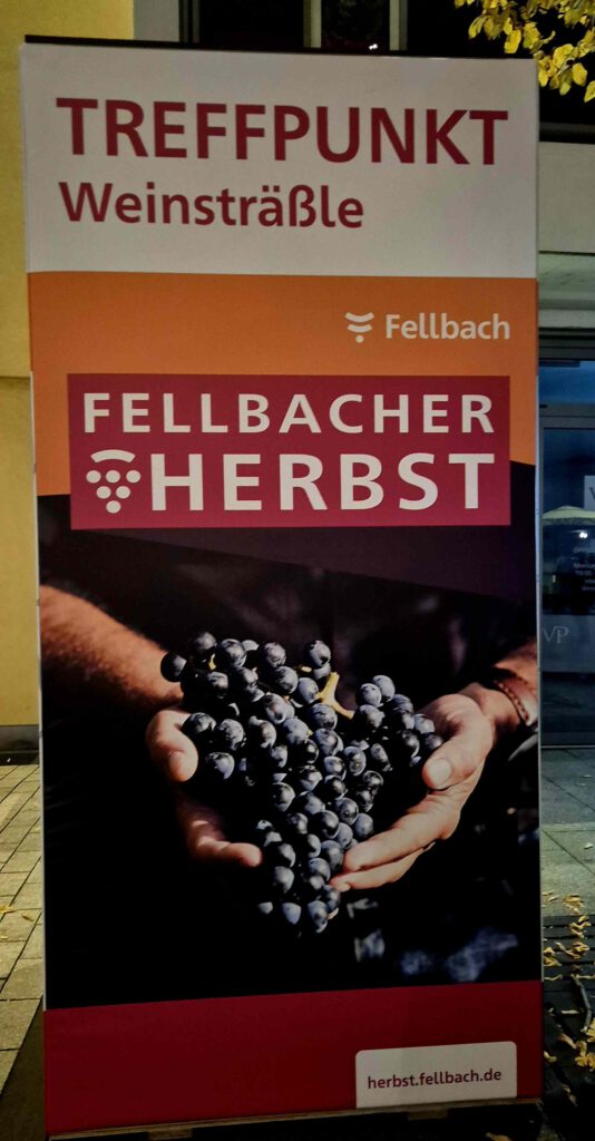 Nein, das ist natürlich der Fellbacher Herbst, ein wirklich nettes Volksfest ohne das bei uns so übliche Gedränge und Geschubse. Es gibt schwäbisches Streetfood und leckere aber sehr teure Weine, da legt man für das Viertele gerne mal 8 bis 10 Euro auf die Theke