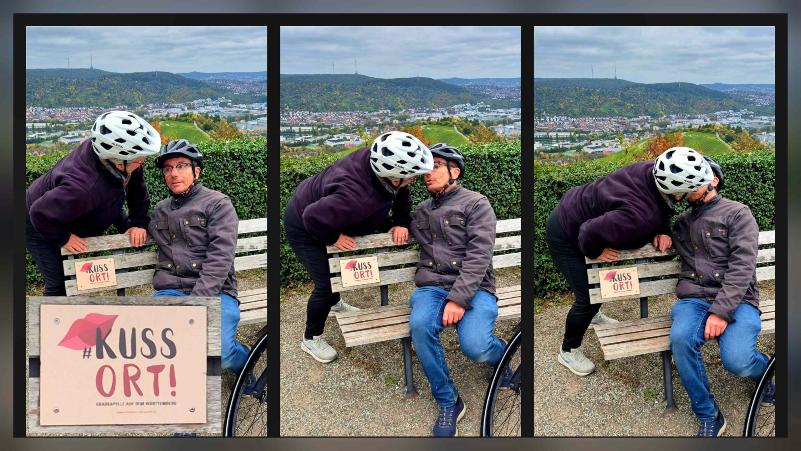 Und eine Bank, die zu körperlicher Nähe aufruft. Das muss man uns nicht zweimal sagen 💋.