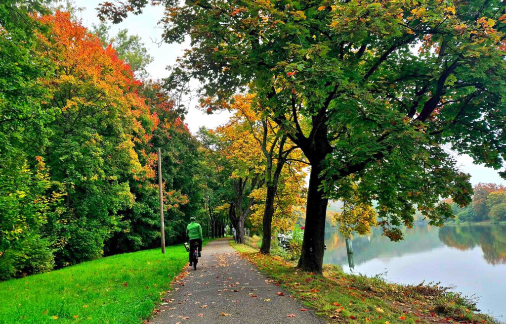 Am Dienstag steht für Karin Babysitten beim Enkelchen an und wir düsen zu dritt in die Landeshauptstadt, wo Rolf einige wirklich klasse Geocaches für uns ausgesucht hat. Die Fahrradroute ist wunderschön und führt uns durch das „Grüne U“, dessen Parkanlagen anlässlich der Internationalen Gartenbauausstellung 1993 angelegt wurden.