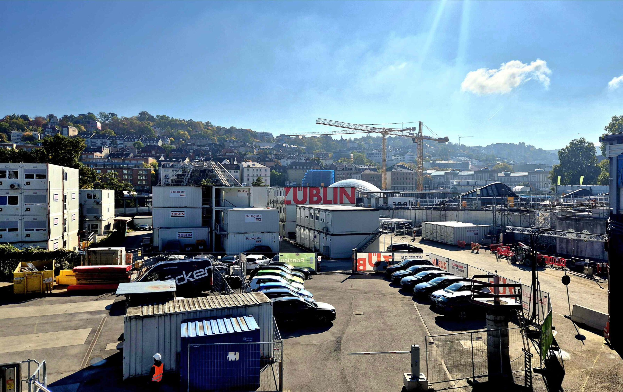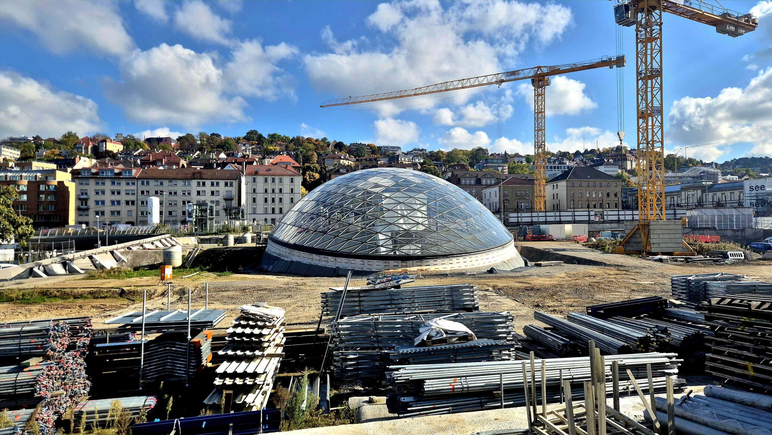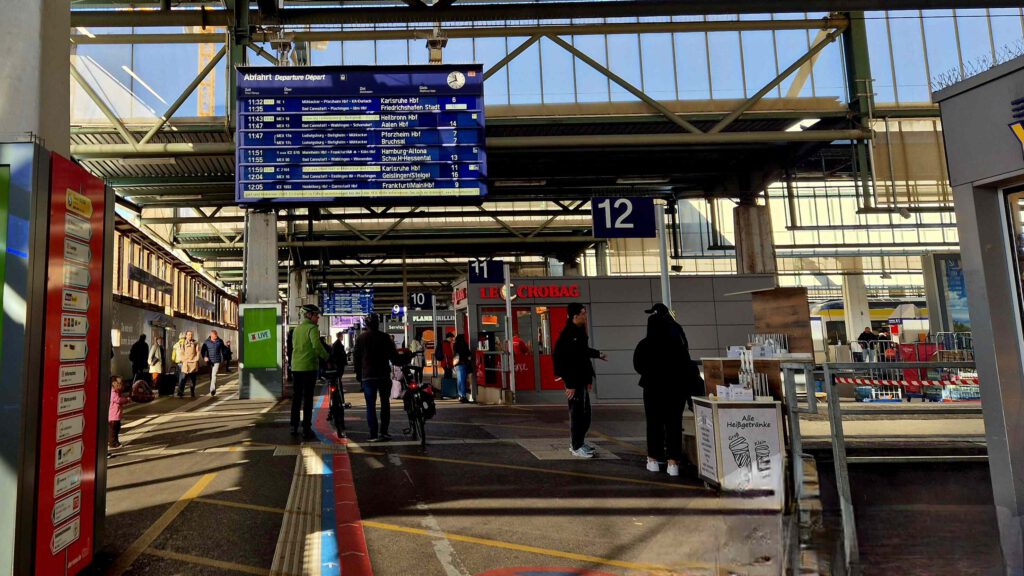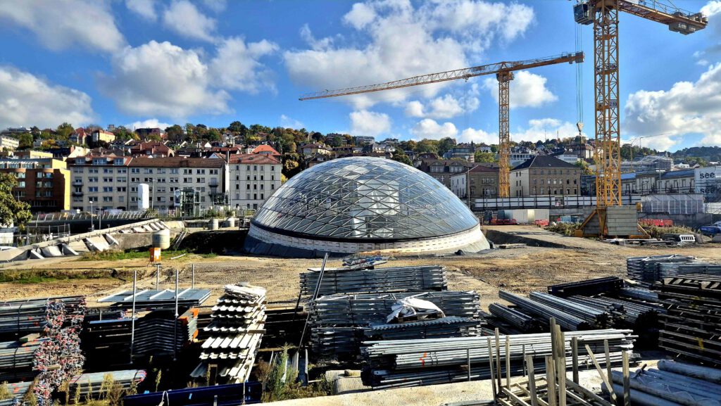 Doch hinter dem Schlosspark ist Schluss mit lustig: Ich sach nur: Stuttgart 21! Um überhaupt an unseren ersten Standort zu kommen, müssen wir die Fahrräder durch den Stuttgarter Hauptbahnhof schieben, denn um die riesige Baustelle ist kein Rumkommen.