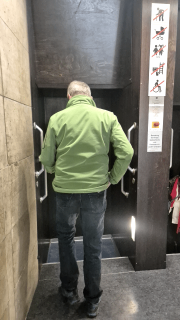 Das haben wir weidlich ausgenutzt bzw. wurden durch den mit der Maschine verbundenen Geocache dazu animiert und sogar genötigt, Dinge zu tun, die man eigentlich nicht tun soll, nämlich NICHT an der untersten oder obersten Etage auszusteigen, sondern einmal unten bzw. oben rum zu fahren 😱.