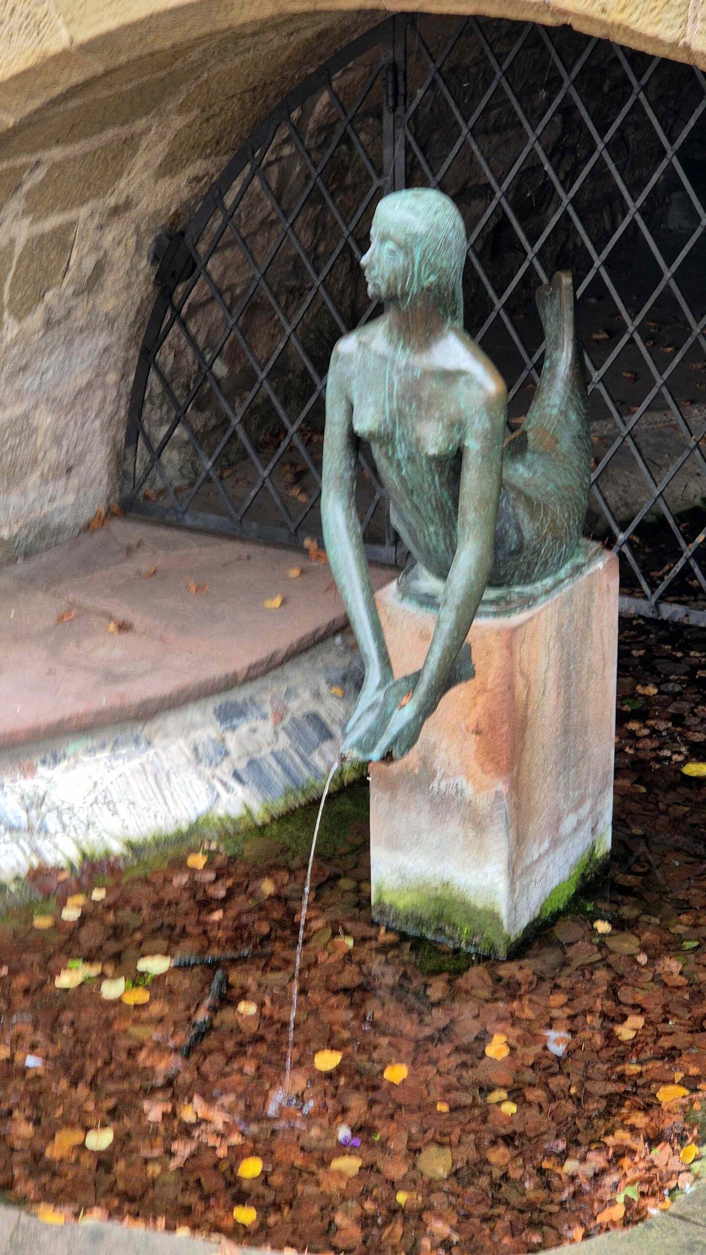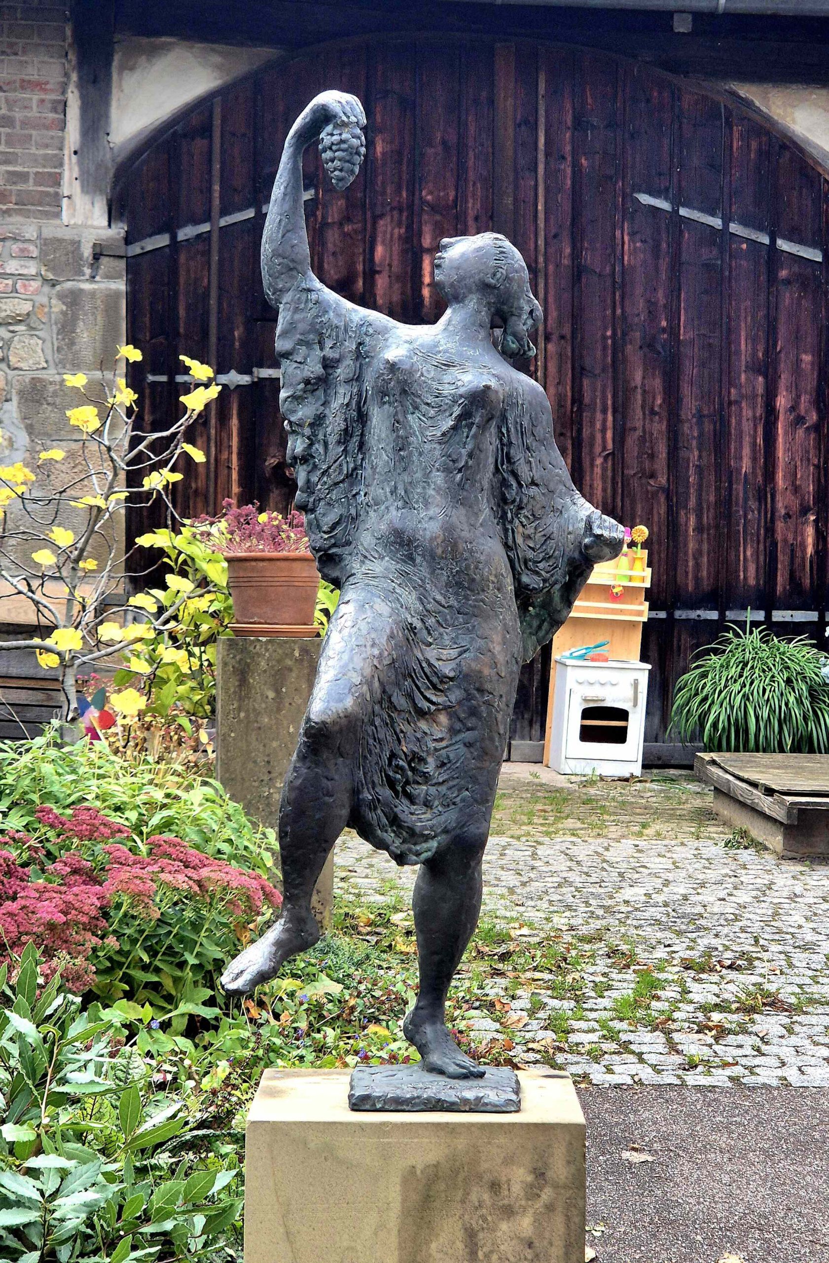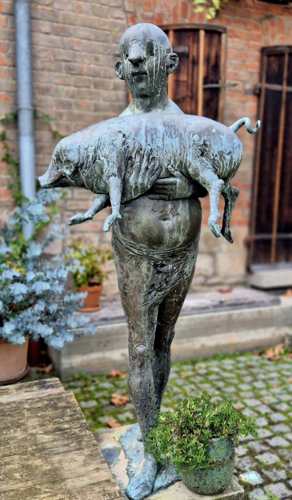 Allerdings lebt in Strümpfelbach ein sehr rühriger Bildhauer, der Herr Nuss, Karl Ulrich mit Vornamen. Der Herr Nuss macht vorwiegend in Bronze und was nicht anderweitig verbaut wird, stellt er halt in Strümpfelbach auf. Daher findet man in und um das Ort zahlreiche Skulpturen, meist figürlich und oft recht humorvoll. Er scheint eine Vorliebe für markante Nasen zu haben – da trifft es sich, dass das Portrait des Ex-Bundespräsidenten Theodor Heuss auf der 2 DM-Münze auch von K.U. Nuss stammt.