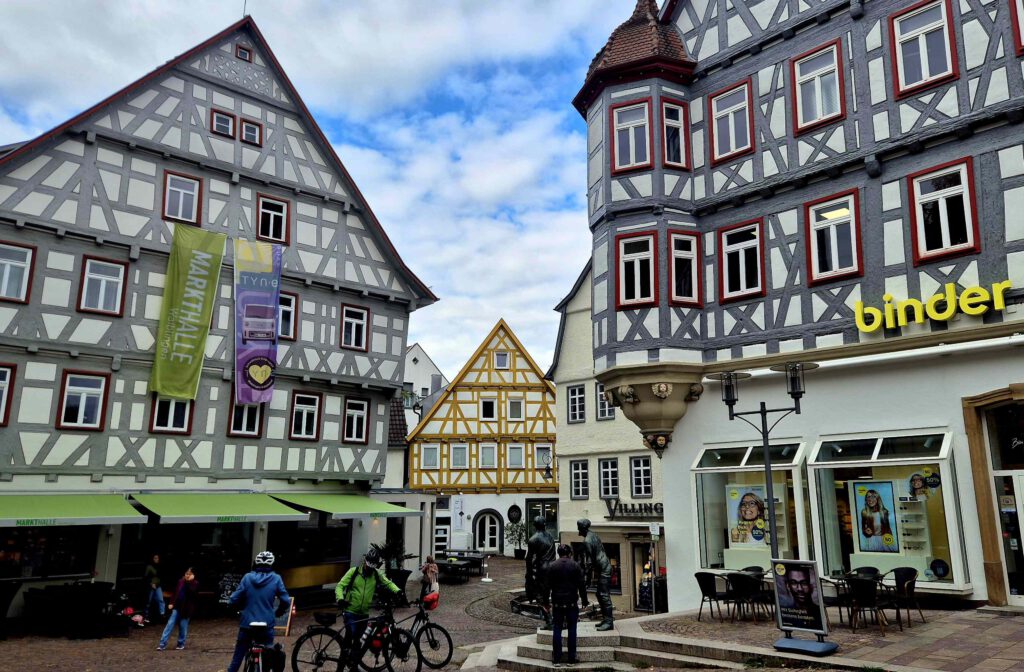 Wir radeln dann durch die Weinberge wieder Richtung Fellbach, machen aber auf Volkers Vorschlag einen Abstecher nach Waiblingen. Das ist die hiesige Kreisstadt, mit knapp 60.000 Einwohnern die größte Stadt nach Stuttgart.
