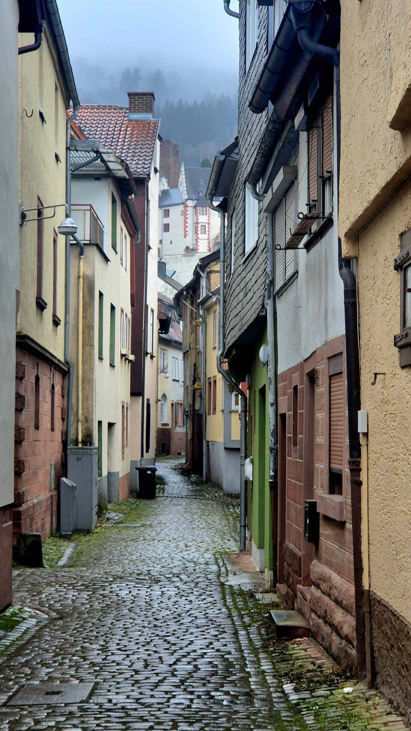 Der Weg dorthin führt wieder durch die Hauptstraße, vorbei am Riesen und zum Schnatterloch, doch der erhoffte Sonnenschein dringt leider nicht bis hierher. Nicht umsonst nennt man den hinteren Bereich der Altstadt Schwarzviertel – er liegt ein halbes Jahr im Schatten. Trotzdem sieht es freundlicher aus als gestern!