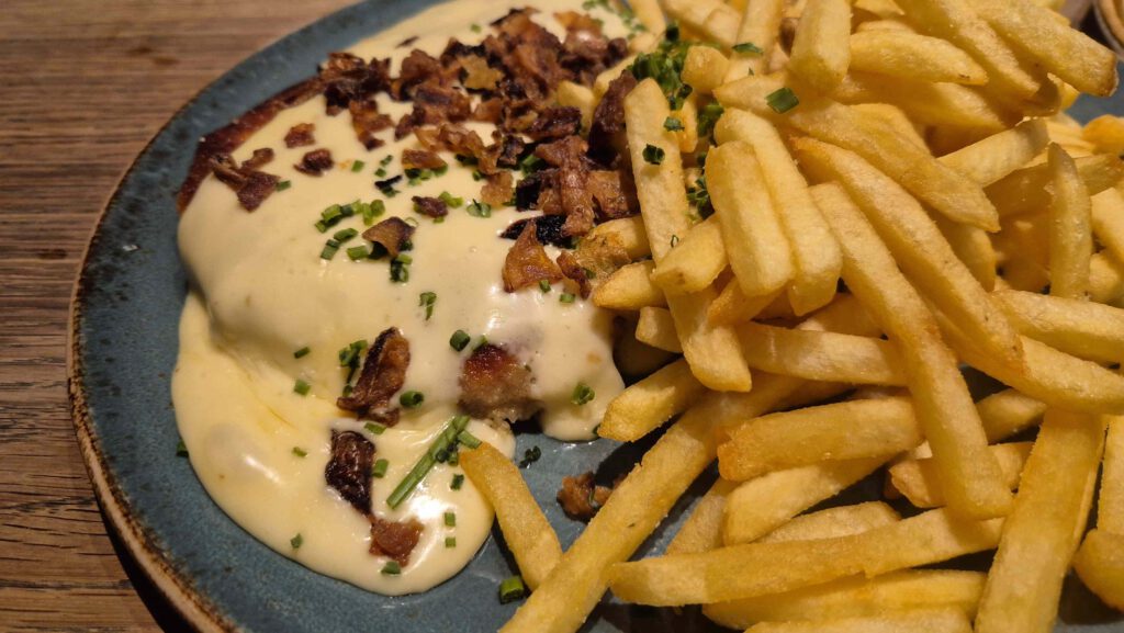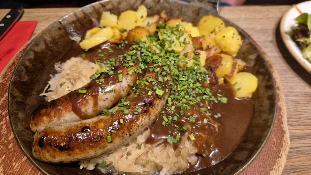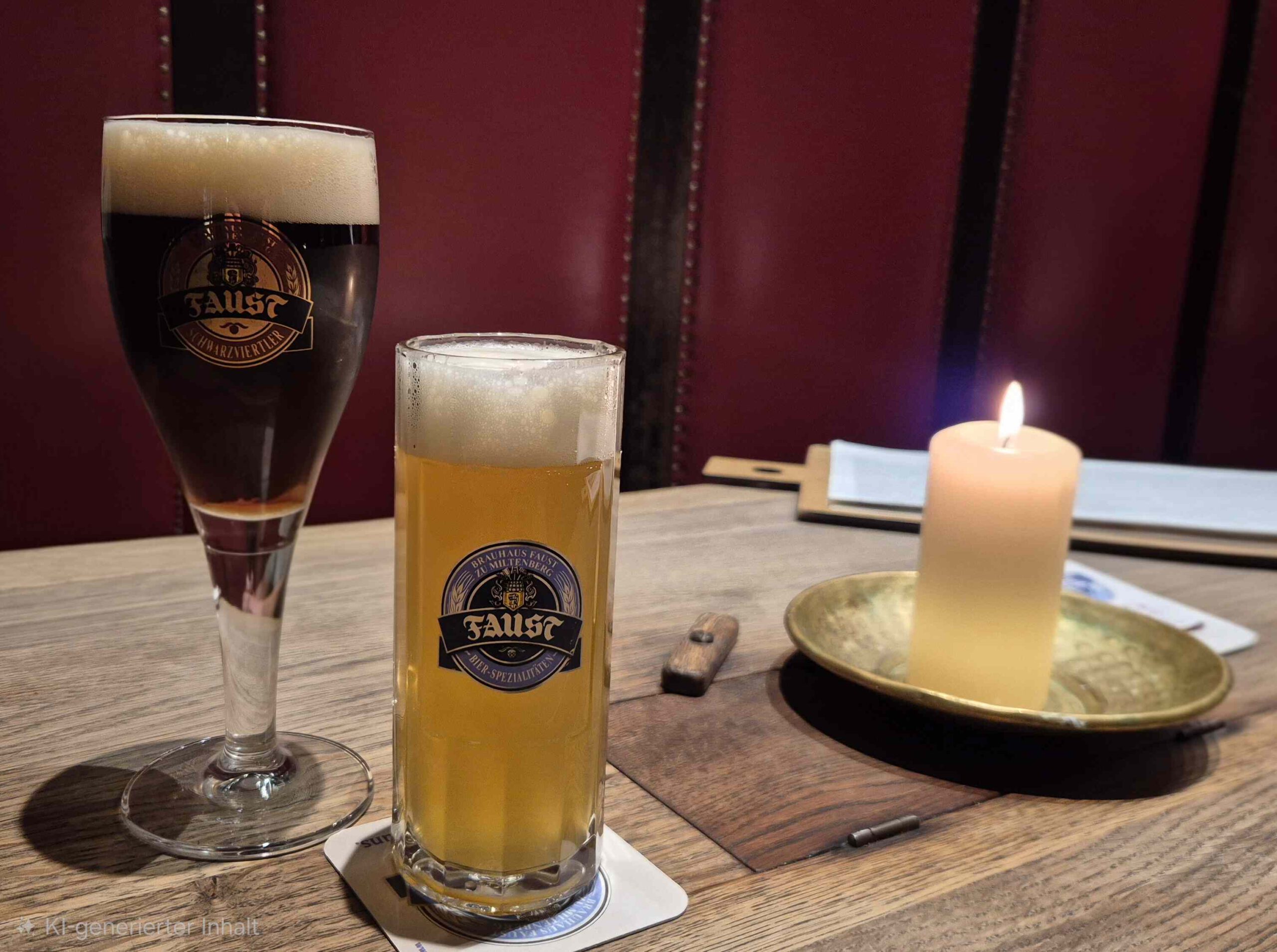 Für uns gab es ein Kochkäs-Schnitzel und fränkische Bratwürste, dazu das süffige Bier der Brauerei Faust. Die machen übrigens auch Führungen, das ließ sich aber leider zeitlich nicht einrichten. Also nächstes Mal!