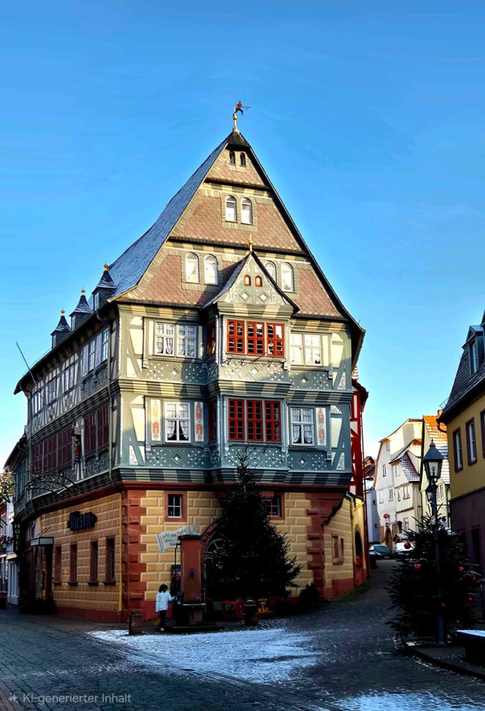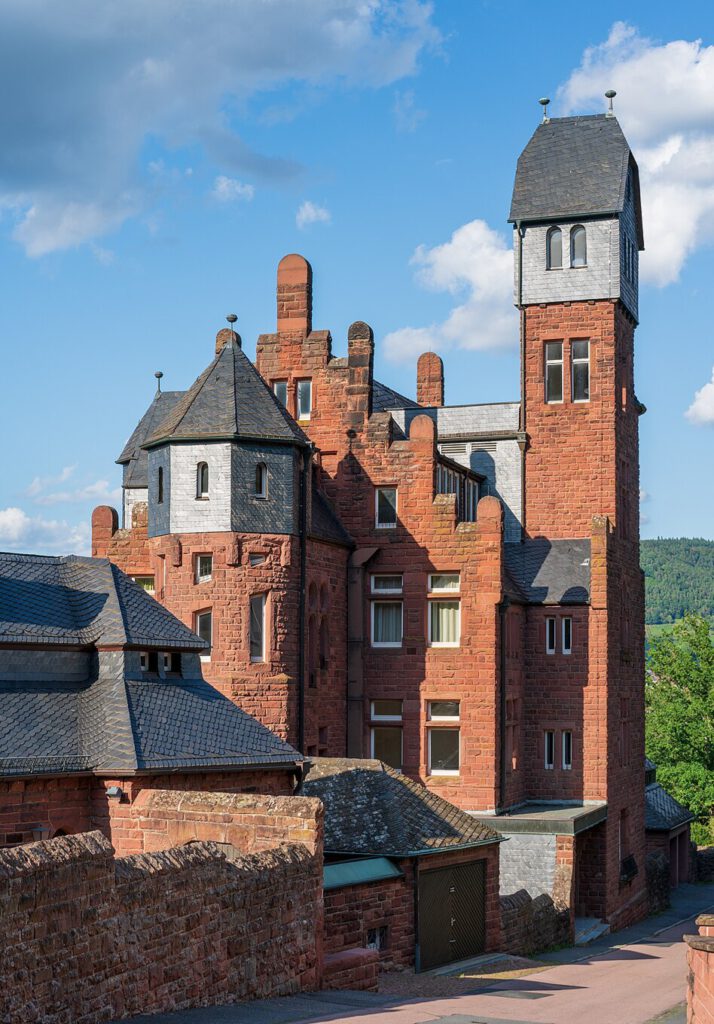 Am Ende musste ich unbedingt noch erfahren, was es mit dem wohl kuriosesten Gebäude in Miltenberg auf sich hat. Es ragt hoch über der Stadt auf und auf einer Art Turm thront ganz oben noch ein kleines verschiefertes Häuschen.