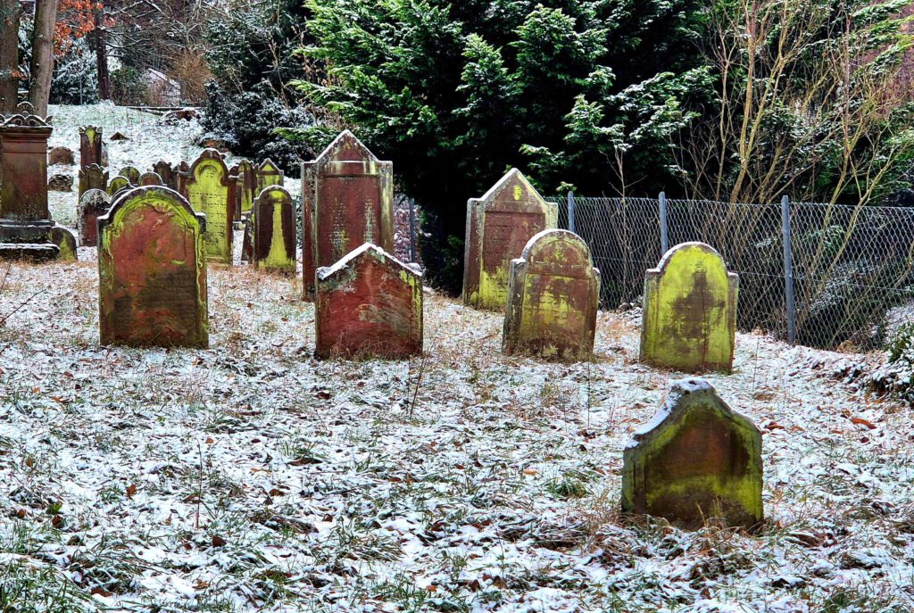 Außerhalb der Stadtmauer treffen wir auf den alten jüdischen Friedhof, die Stadt hatte eine recht große jüdische Gemeinde (wo Geld ist, werden Kaufleute und Bankiers gebraucht, beides Kernkompetenzen der jüdischen Mitbürger, die ja von allen Handwerkszünften und vielen anderen Berufen ausgeschlossen waren). Ich finde, gerade diese jüdischen Friedhöfe strahlen in ihrer Schlichtheit eine besondere Würde aus. Jedes Grab ist hier auf Ewigkeit angelegt, nicht wie bei uns auf 20 oder 30 Jahre geleast (es sei denn man kauft sich eine Familiengruft oder so).