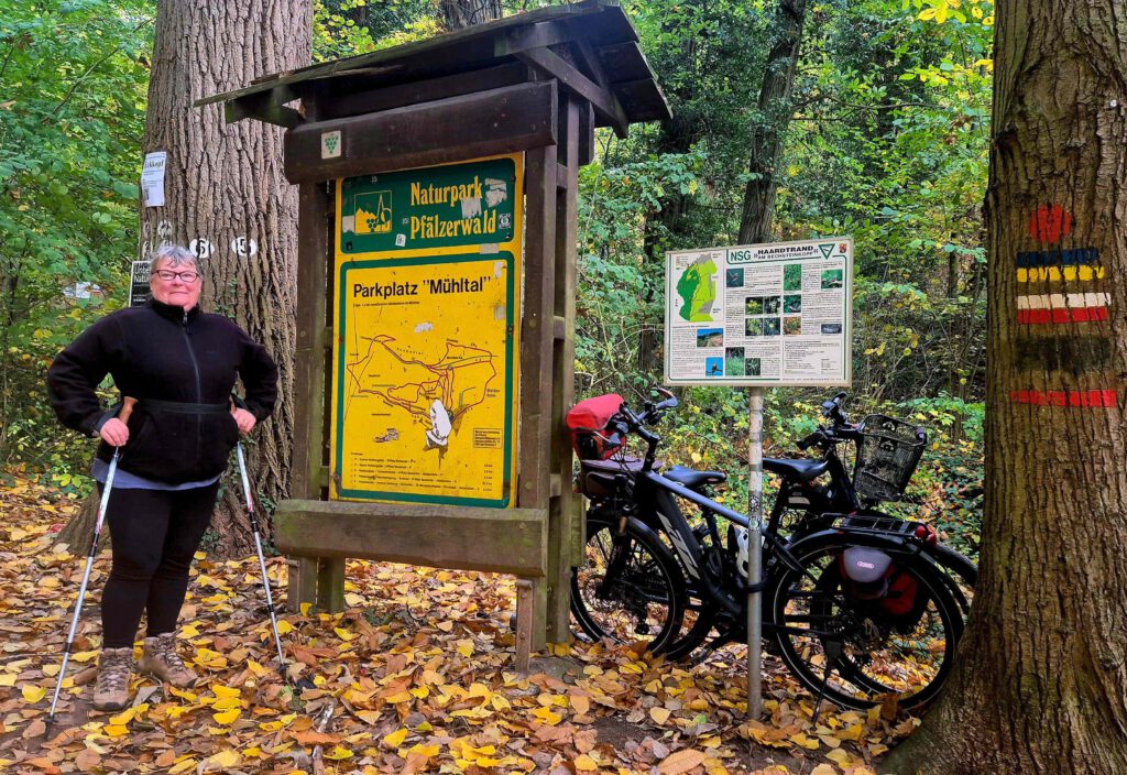 Am Samstag früh radeln wir dann auf einem hübschen Radweg die 7 Kilometer Richtung Waldrand zum Startpunkt des Multis „Pfalzblick“ hinter Deidesheim.
