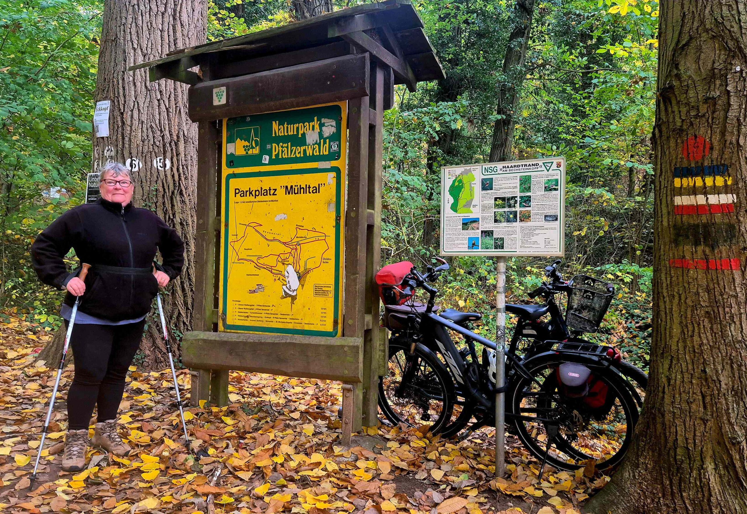 … und dann heißt es schnell sein: Fahrräder aufschließen, Turbo rein und über den Fahrweg hoch zur Deidesheimer Hütte, denn die hat warme Küche bis 17 Uhr. Es ist 10 vor 🚴♀️🚴♂️.