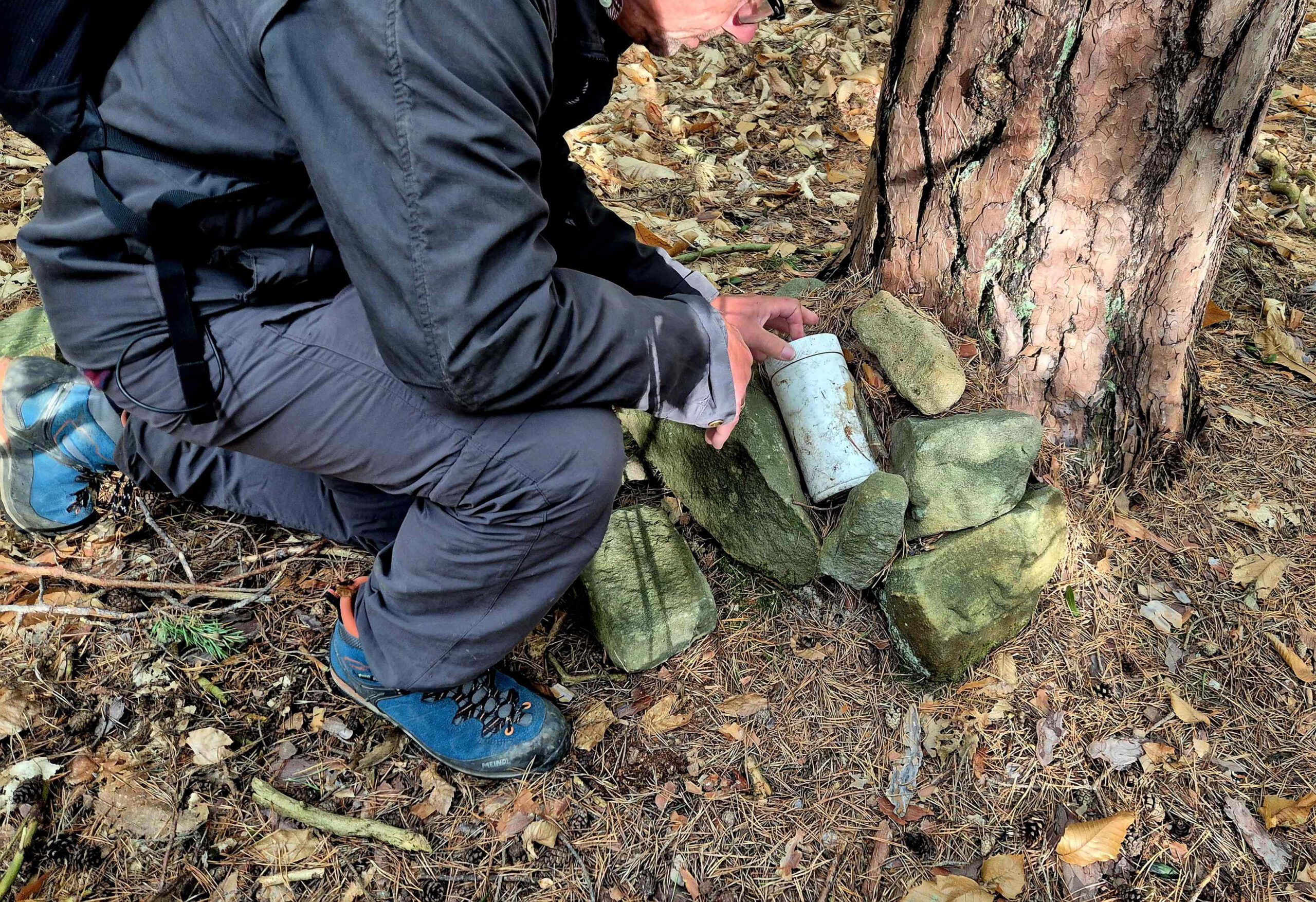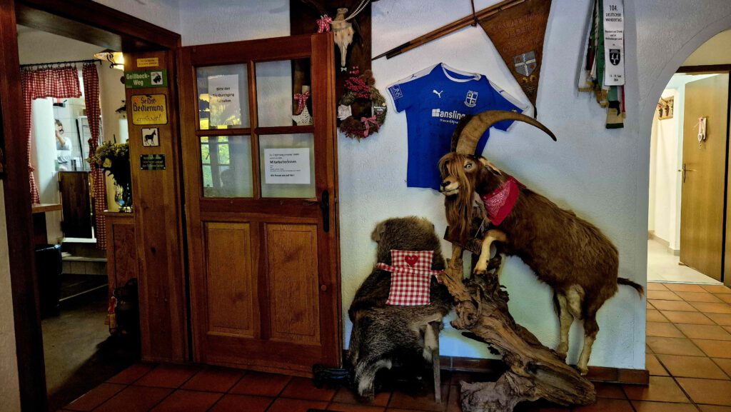 Wir kommen am Ende der inzwischen 11 km langen Wanderung (angegeben waren 8, aber es ist irgendwie immer weiter 🤷♂️) am Gasthaus Pfalzblick vorbei, dem Namensgeber des Multis. Aber das hat leider schon um 16 Uhr seine Pforten geschlossen 😐️.