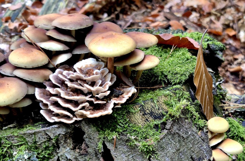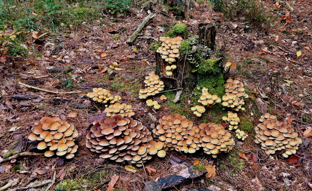 Hier nun die Ausbeute an Pilzen. Wenn man die hätte essen können, das hätte für Wochen gereicht. Sie sehen wunderhübsch aus, wenn sie sich so aneinanderkuscheln