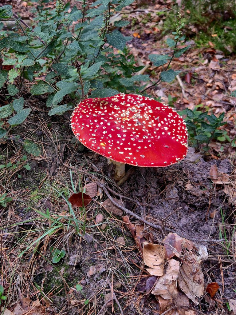 Auch die Einzelexemplare können sich sehen lassen. Zwei davon kann sogar ich benamsen, den Fliegenpilz (haha) und links ein kapitaler Steinpilz. Den hätten wir eigentlich sogar mitnehmen und futtern können, aber im Rucksack war kein Platz und heute bleibt die Küche auch kalt. (Und ehrlich gesagt hab ich mich auch nicht getraut, der lag schon abgerupft am Boden, wer weiß wie lange schon 🤢).